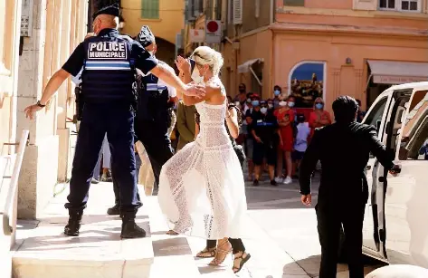 mariage civil de sophie tapie et jean mathieu marinetti la mairie de saint tropez en presence de leurs parents et de la famille le 20 aout 2020 purepeople